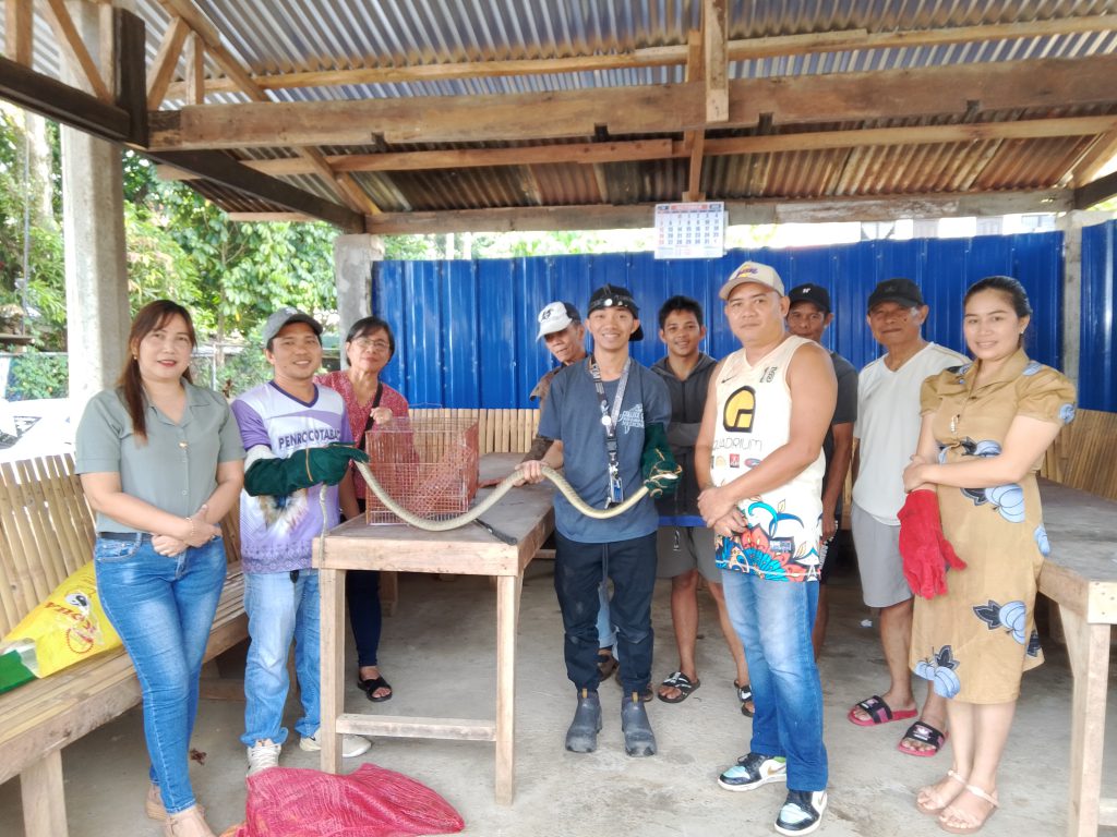 Kidapawan city, Cotabato –A female King Cobra (Ophiophagus sp.) measuring 81 centimeters was successfully rescued in Purok Marang, Poblacion, Kidapawan City, through the swift and coordinated response of the community, local authorities, and wildlife experts.